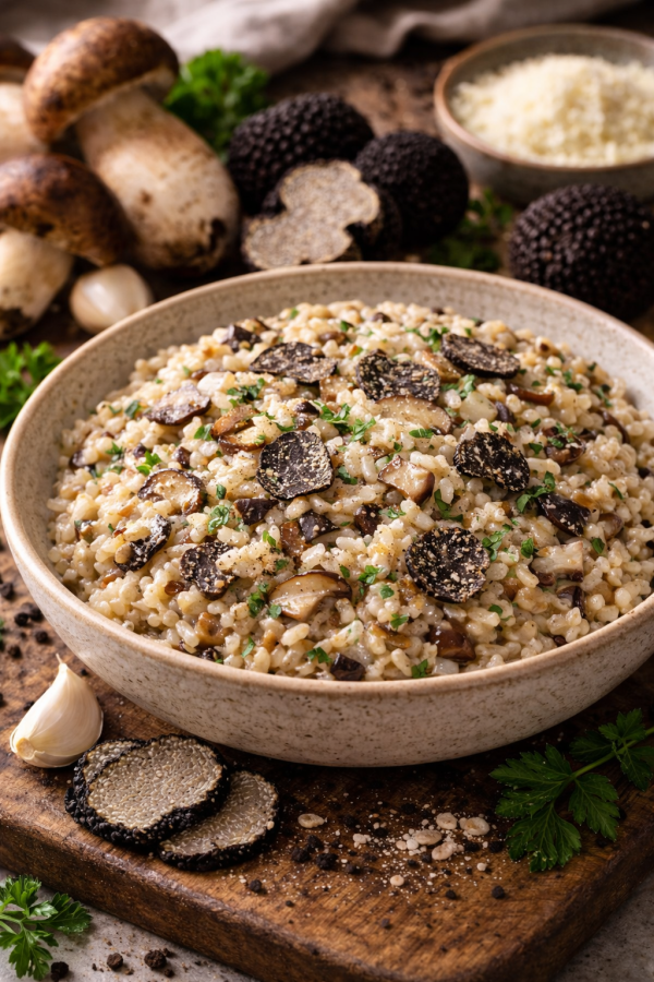 Risotto aux truffes et cèpes prêt en 10 mn.La dose recommandée est d’environ 100 g par personne.